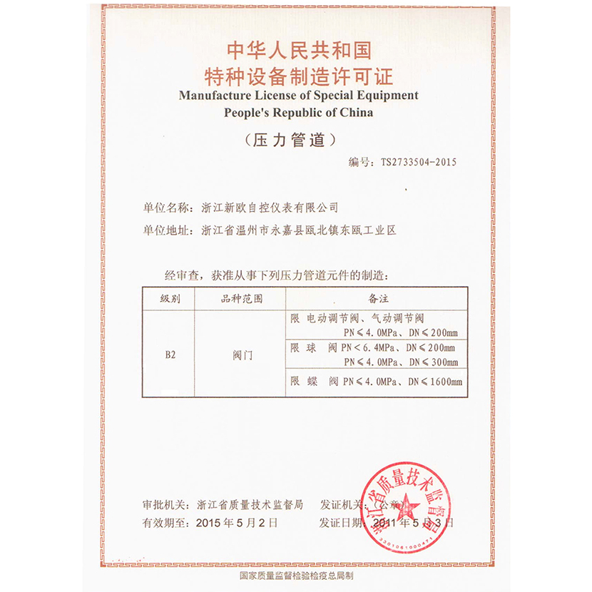 TS certification - with butterfly valve